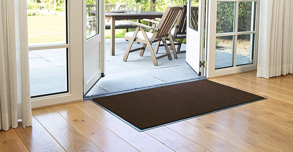 Een rubberen mat of kokosmat met PVC-rug is ideaal voor buiten. Ze zijn robuust en kunnen goed tegen vuil en (lichte) weersinvloeden. Voor open buitenruimtes is een volledig rubberen mat beter omdat die sneller droogt.